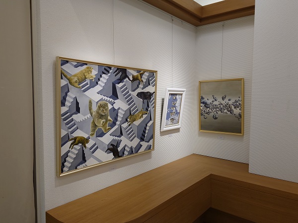 作者の不思議な世界を描いたダイナミックな絵画作品のかずかず、どうぞご覧ください。