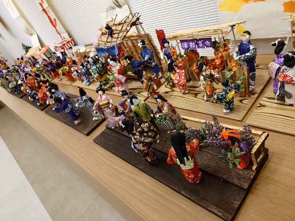 精巧に作られた和紙人形のかずかず、どうぞ間近でご覧ください。