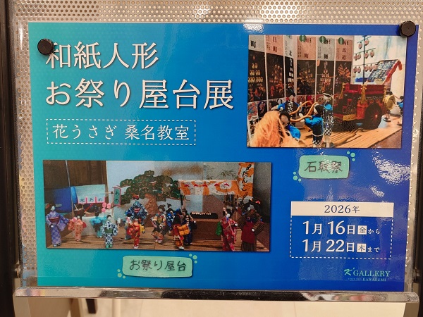 メガネ本店ギャラリースペースでは、『和紙人形 お祭り屋台展』を、開催しております。