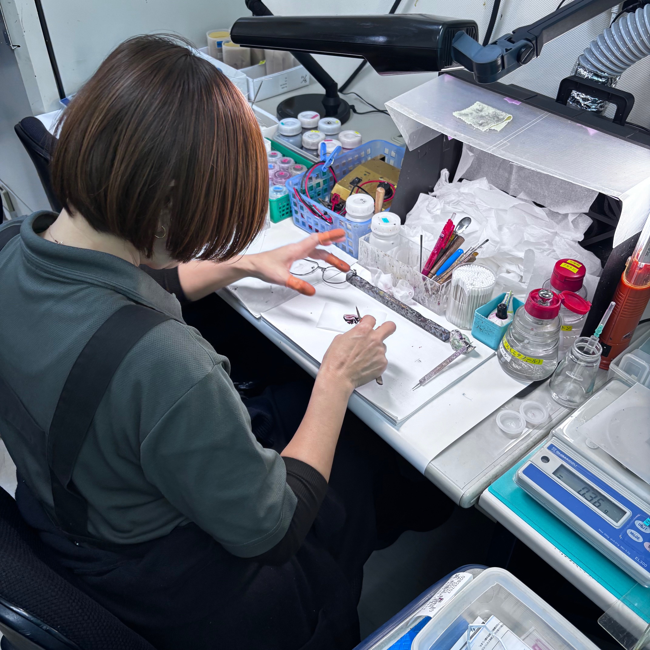 送られてきたフレームを何人もの職人さんの手を経てなおし方を工夫しながら一つ一つ丁寧に作業をしていました。